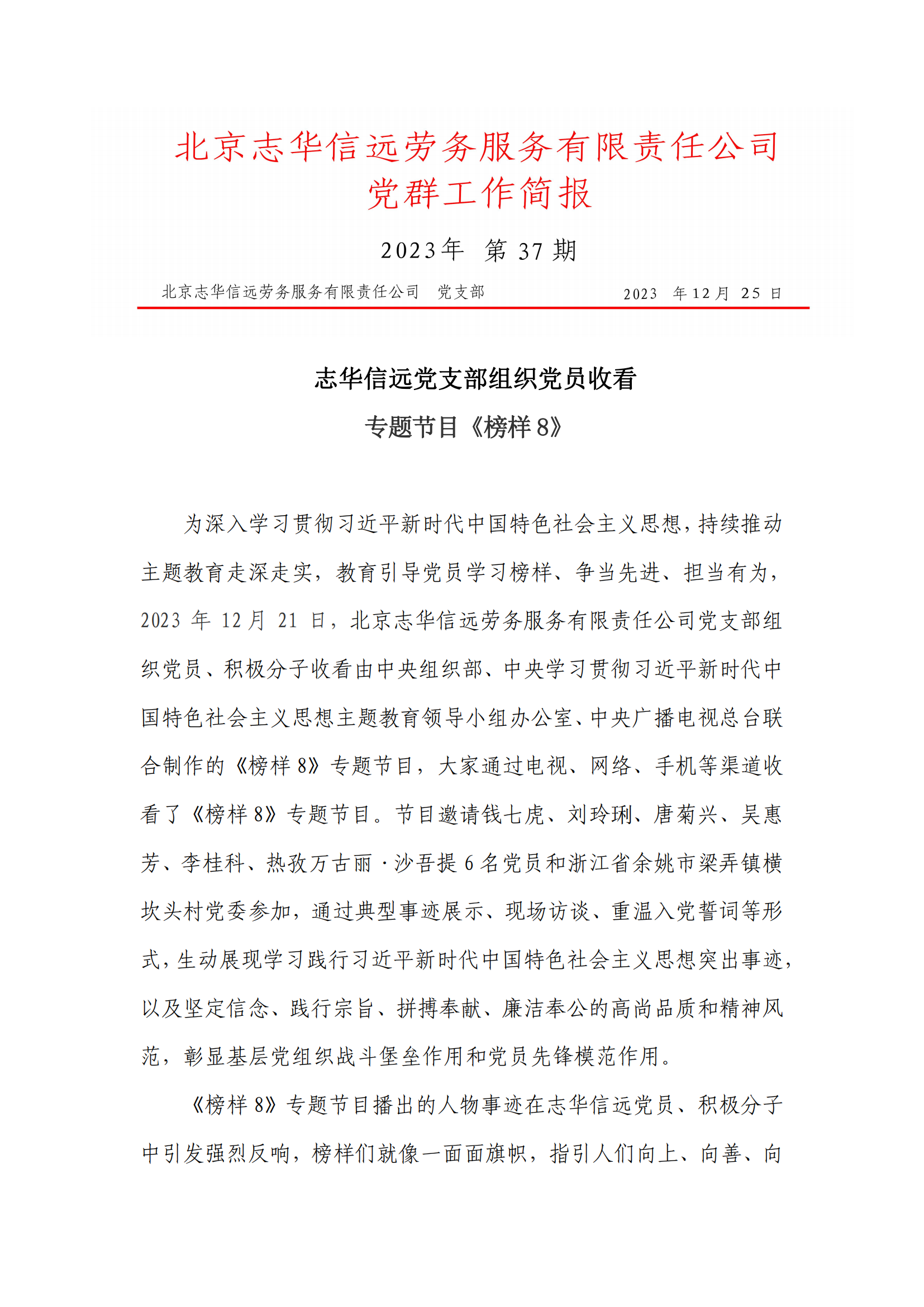 志华信远党支部组织党员收看 专题节目《榜样 8》